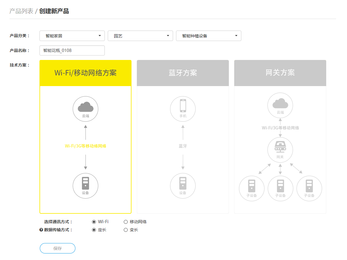 登陆开发者中心创建产品